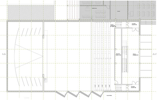 Este proyecto partía de la pretensión de realizar un auditorio, que sirviera tanto para salón de actos del colegio donde celebrar graduaciones, aperturas de curso, actuaciones musicales o teatrales de uso interno, como para auditorio o teatro de uso externo por organizaciones públicas o privadas, que pudieran desarrollar usos diversos, desde congresos a conciertos musicales. Se partía de un presupuesto muy ajustado y de unas necesidades acústicas elevadas, que dieran buena respuesta a todas las actividades mencionadas. El diseño interior estaba condicionado por estas premisas, añadiendo que al ser sus usuarios principales los estudiantes del colegio, es decir niños, tanto el mobiliario como las zonas bajas de las paredes debían ser especialmente resistentes al uso y al roce. El resultado final es un auditorio polifuncional, de apariencia noble a la par que moderna, con unos valores acústicos muy ajustados y unos materiales muy resistentes entre los que se encontraban el granito, algunas especies de maderas especialmente tratadas y el acero.